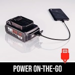 Power on the GO—Plug in To the battery’s USB port wherever, whenever with PWR assist mobile charging.