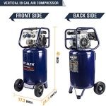 Large Capacity: 20 gallon air compressor with rubber-reinforced handle and large rubber wheels for easy transport