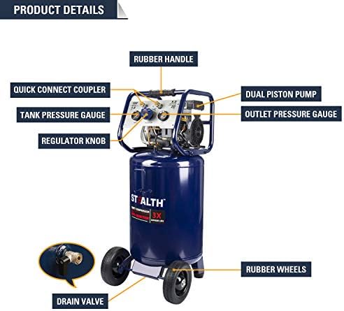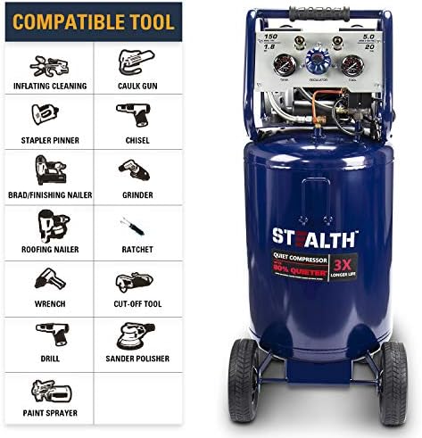 STEALTH 20 Gallon Air Compressor, Ultra Quiet, Oil-Free and Long Life Cycle,1.8