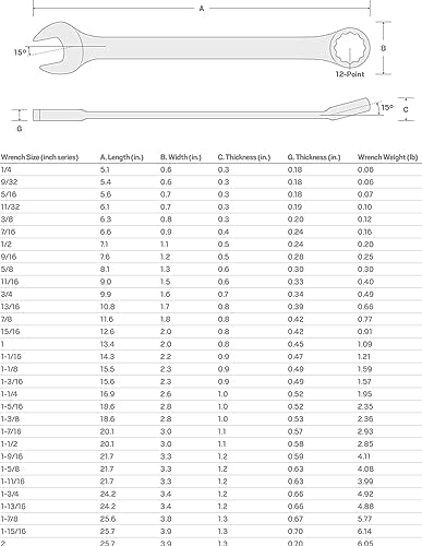 Angled Open End – To reduce the working swing arc in tight spaces, the open end is angled 15 degrees so the wrench can be flipped over with each rotation to engage the fastener twice as often