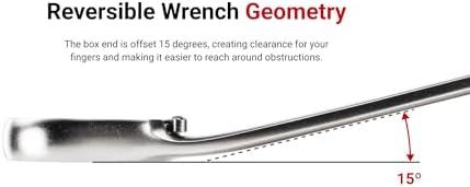 Reversible Wrench Geometry – The box end is offset 15 degrees, creating clearance for your fingers and making it easier to reach around obstructions