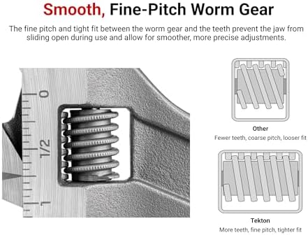 Smooth, Low-Pitched Worm Gear – The low-pitch angle and tight fit between the gear and the teeth prevent the jaw from sliding open during use and allows for smoother, more precise adjustments