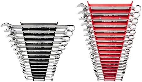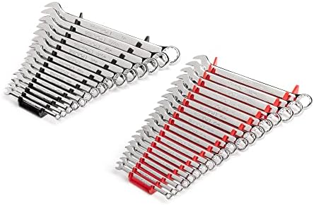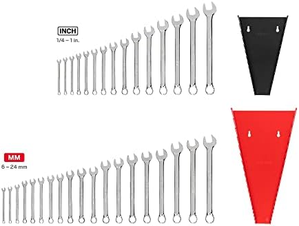 Includes 15-pc. inch combination wrenches: 1/4, 9/32, 5/16, 11/32, 3/8, 7/16, 1/2, 9/16, 5/8, 11/16, 3/4, 13/16, 7/8, 15/16, 1 in.; 19-pc. metric combination wrenches: 6, 7, 8, 9, 10, 11, 12, 13, 14, 15, 16, 17, 18, 19, 20, 21, 22, 23, 24 mm; Wrench racks