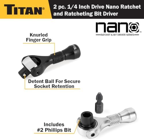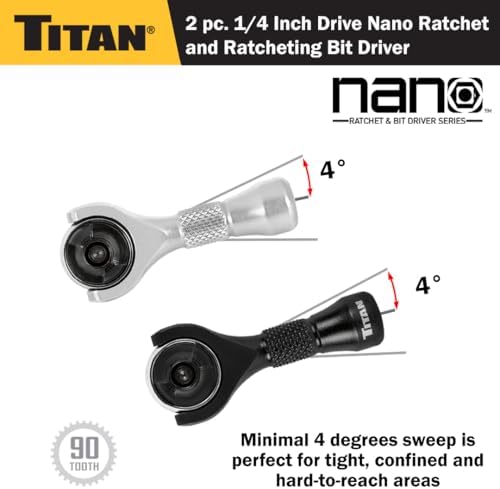 Titan 11332 2-Piece 1/4-Inch Drive x 2-1/4-Inch 90-Tooth Swivel Head Nano