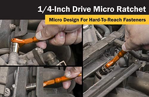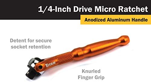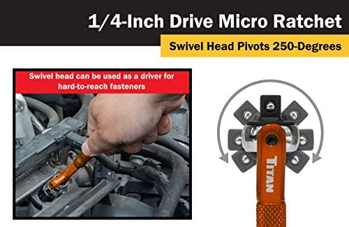 Titan Tools 11322 1/4-Inch Drive x 4-Inch 90-Tooth Swivel Head Micro Ratchet