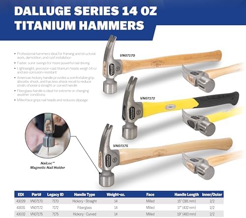 Built for reliability and performance, the DALLUGE Titanium Hammer is ideal for construction and professional building needs