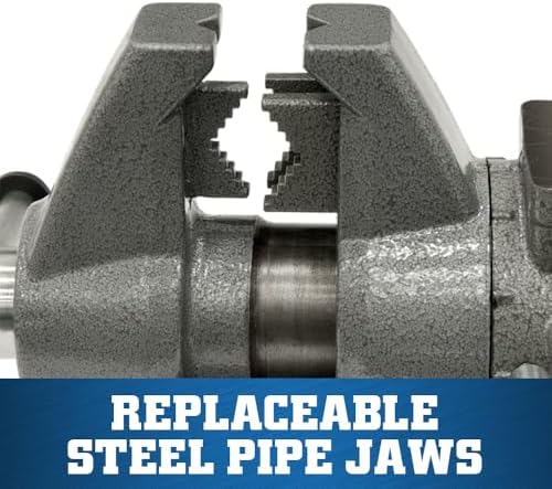 Replaceable hardened steel jaws with a serrated pattern ensure grip and a long life