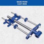 TECHNICAL SPECS: Vise 10-1/4″ width x 19-1/4″ Length, screw 1-3/16″ diameter x 15-1/2″ Length, 3/4″ diameter guide Rods