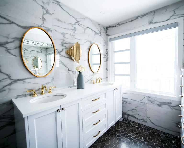 This bathroom transformation showcases the perfect fusion of Rockaya’s hand-picked, premium marble surfaces and Decora’s master-level craftsmanship. From the seamless vein transitions on the walls to the precision-fitted gold accents, every detail was curated to create a spa-like retreat within the home.